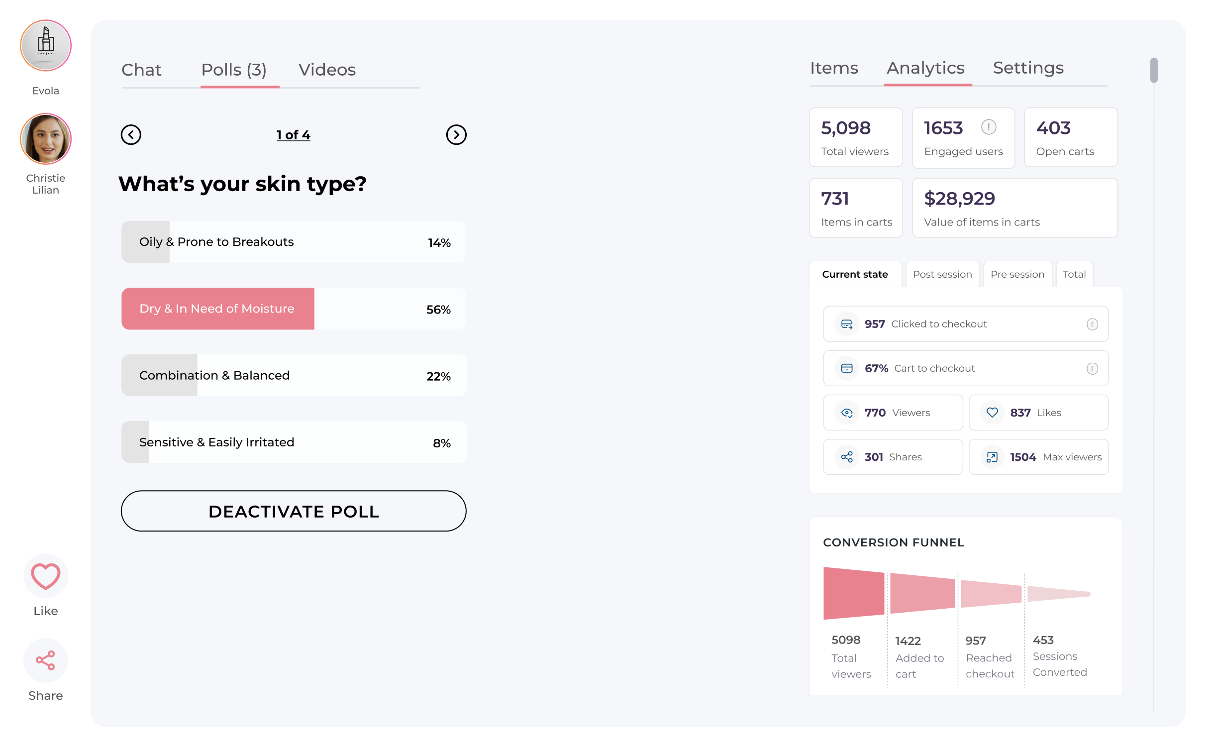 Expand your audience with interactive tools that engage and motivate viewers to participate and share, turning your customers into brand advocates and fueling organic growth with every session.